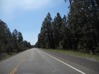 As I sat on the side of the road poking at the GPS trying to get to the right zoom level to find the illusive Route 126, a pickup pulled to a stop on the other side of the highway...the divided highway...and a sturdy-looking woman climbed out and walked across the road, the median, and my side of the road to ask "Everything OK?" I assured her I was fine...just checking my navigation. I was looking for the road to Fenton Lake State Park. "Route 126, I think." I said. "Oh, you don't want to go there on that. It's a bad road. It is paved for about ten miles but then gravel and then dirt with lots of washboard and potholes." Suddenly the light came on. I have my GPS programmed to avoid putting routes onto unpaved roads. 1000 lbs of bike on street tires on dirt is a bad idea on a straight road. On mountain curves it would be suicide. "Well, that explains it", I said, "It looks like I need to keep going on 550 for a few more miles and then turn to Los Alamos, instead of going there via Fenton Lake." "Oh, you are going to Los Alamos? Yea, that's a better way... On Highway 4 through Jemez Springs. It's pretty up there."